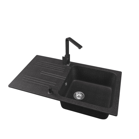1 kép Nero Gránit mosogató NERO Malta + Design csaptelep + adagoló (fekete)
