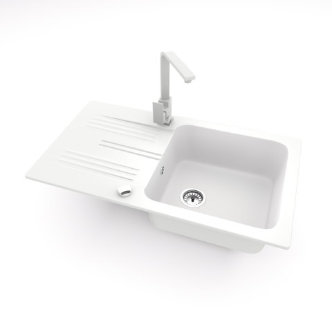 Nero Gránit mosogató NERO Malta + Design csaptelep + dugóemelő (fefér) mosogatótálca termékleírás