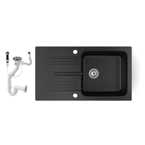 Nero Gránit mosogató NERO Malta + dugókiemelő (matt fekete) mosogatótálca termékleírás