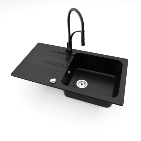 1 kép Nero Gránit mosogató NERO Malta + kihúzható zuhanyfejes Duo-Flex csaptelep + dugóemelő (matt fekete)