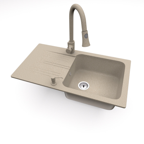 1 kép Nero Gránit mosogató NERO Malta + kihúzható zuhanyfejes Snake csaptelep + adagoló (bézs)