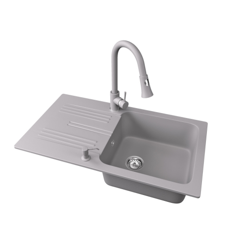 Nero Gránit mosogató NERO Malta + kihúzható zuhanyfejes Snake csaptelep + adagoló (szürke) mosogatótálca termékleírás