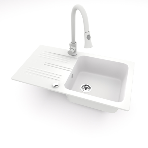 Nero Gránit mosogató NERO Malta + kihúzható zuhanyfejes Snake csaptelep + dugóemelő (fefér) mosogatótálca termékleírás