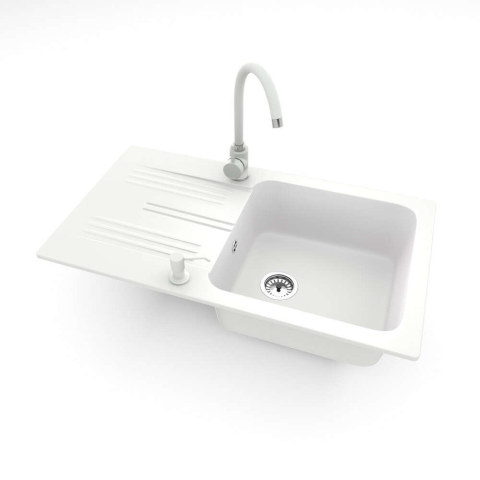 1 kép Nero Gránit mosogató NERO Malta + magasított csaptelep + adagoló (fehér)
