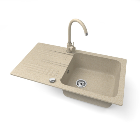 Nero Gránit mosogató NERO Malta + magasított csaptelep + dugókiemelő (bézs) mosogatótálca termékleírás