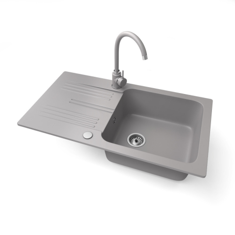 Nero Gránit mosogató NERO Malta + magasított csaptelep + dugókiemelő (szürke) mosogatótálca termékleírás