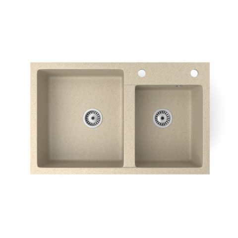 NERO Palazzo Kétmedencés Gránit Mosogató – Bézs, 80x50 cm Elegáns és praktikus kétmedencés gránit mosogató, amely minden konyhába stílust és funkcionalitást visz. A NERO Palazzo kollekció részeként ez a modell kiemelkedő minőséget és tartósságot kíná...