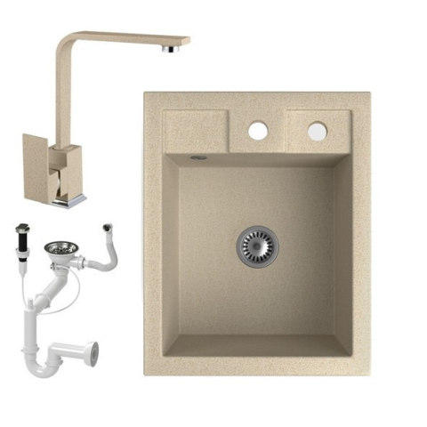 1 kép Nero Gránit Mosogató NERO Parma + Design csaptelep + dugóemelő + szifon (bézs)