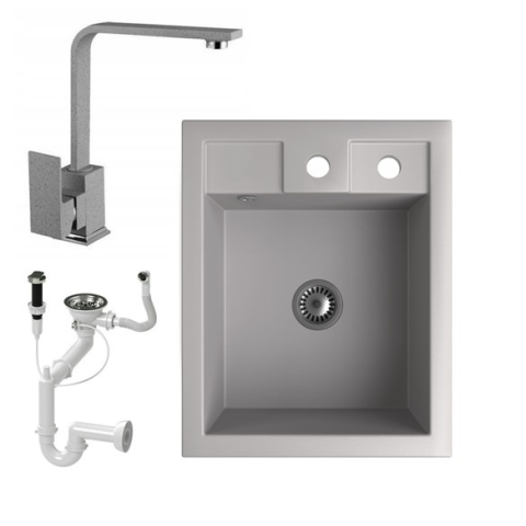 1 kép    Nero Gránit Mosogató NERO Parma + Design csaptelep + dugóemelő + szifon (szürke)
