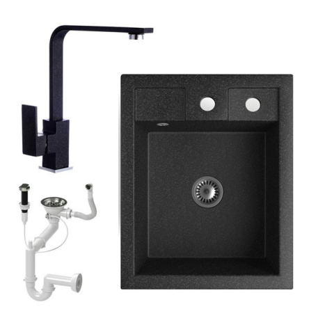 1 kép Nero Gránit Mosogató NERO Parma + Design csaptelep + dugókiemelő + szifon (fekete)