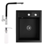 1 kép Nero Gránit Mosogató NERO Parma + kihúzható fejes Linea csaptelep + adagoló + szifon (matt fekete)