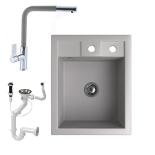 1 kép Nero Gránit Mosogató NERO Parma + kihúzható Linea csaptelep + dugókiemelő + szifon (szürke)