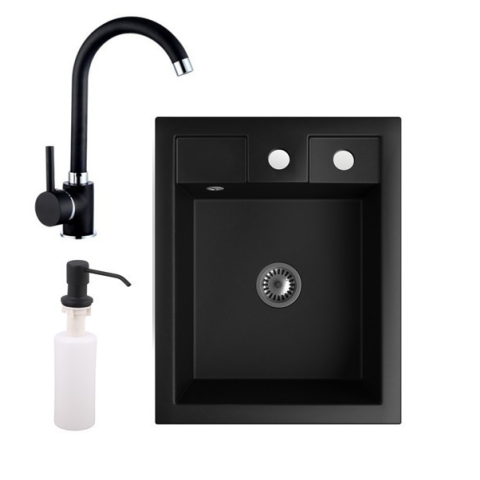 1 kép Nero Gránit mosogató NERO Parma + magasított csaptelep + adagoló + szifon (matt fekete)