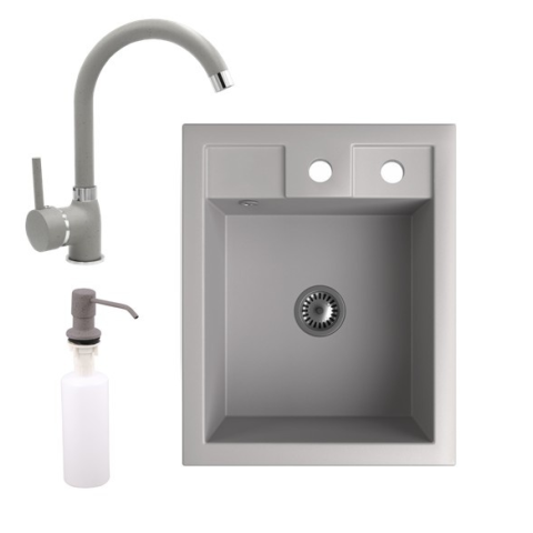 1 kép Nero Gránit Mosogató NERO Parma + magasított csaptelep + adagoló + szifon (szürke)