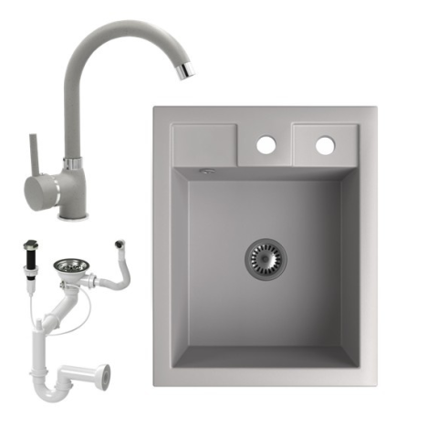 Nero Gránit mosogató NERO Parma + magasított csaptelep + dugókiemelő + szifon (szürke) mosogatótálca termékleírás