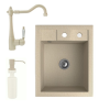 1 kép Nero Gránit Mosogató NERO Parma + rusztikus csaptelep + adagoló + szifon (bézs)