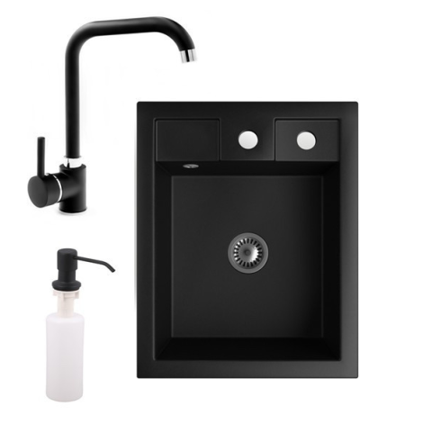 1 kép Nero Gránit mosogató NERO Parma + Steel csaptelep + adagoló + szifon (matt fekete)
