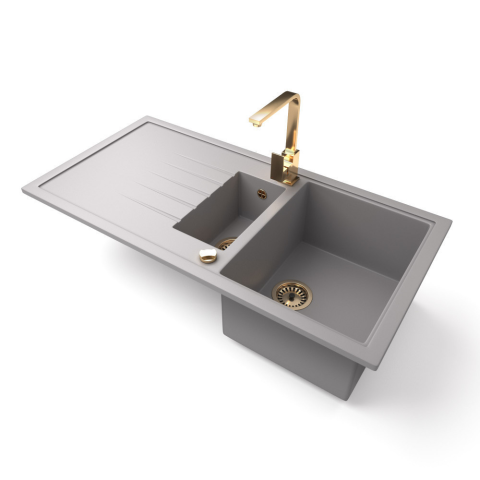 1 kép Nero Gránit mosogató - Nero Solarys + Design Gold csaptelep + dugókiemelő (szürke)