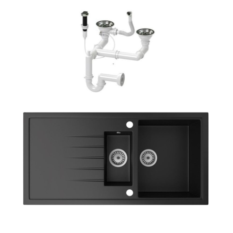 Teljes Nero Gránit mosogató - Nero Solarys + dugóemelő (matt fekete) termékleírás