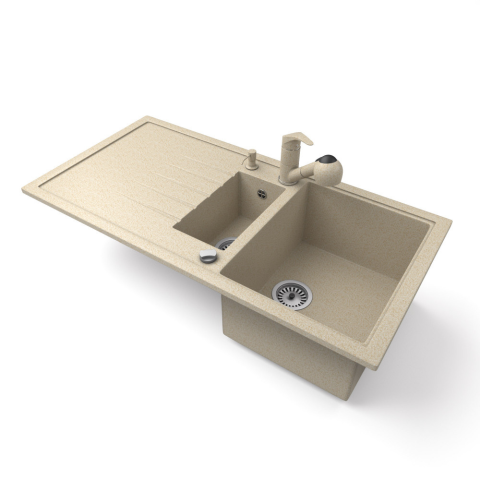 1 kép Nero Gránit mosogató - Nero Solarys + kihúzható zuhanyfejes Shower csaptelep + adagoló + dugókiemelő (bézs)