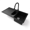 1 kép Nero Gránit mosogató - Nero Solarys + kihúzható zuhanyfejes Snake csaptelep + adagoló + dugókiemelő (matt fekete)
