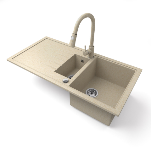 Nero Gránit mosogató - Nero Solarys + kihúzható zuhanyfejes Snake csaptelep + dugókiemelő (bézs) mosogatótálca termékleírás