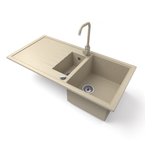 Nero Gránit mosogató - Nero Solarys + Steel csaptelep + dugókiemelő (bézs) mosogatótálca termékleírás