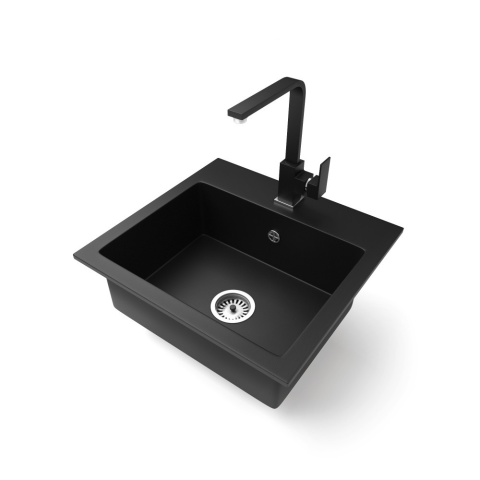 Nero Gránit mosogató NERO Uno + Design csaptelep (matt fekete) mosogatótálca termékleírás