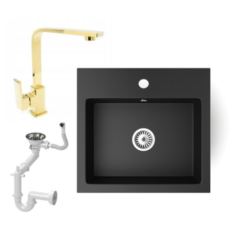 Teljes Nero Gránit mosogató NERO Uno + Design Gold csaptelep (matt fekete) termékleírás