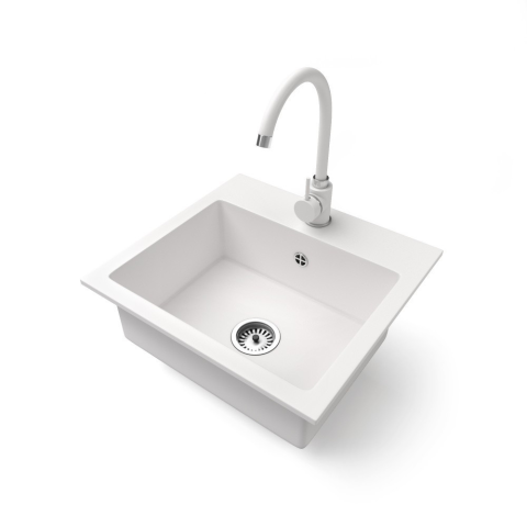 1 kép Nero Gránit mosogató NERO Uno + magasított csaptelep (fehér)