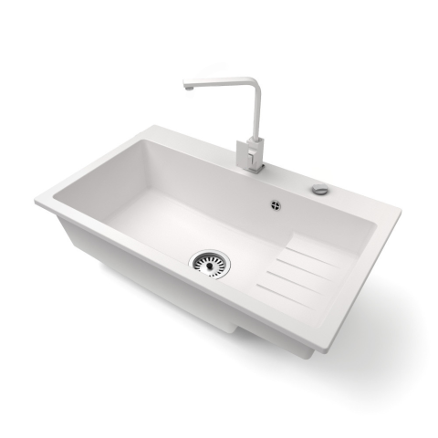 Nero Gránit mosogatótálca NERO Boss + Design csaptelep + dugókiemelő (fehér) mosogatótálca termékleírás