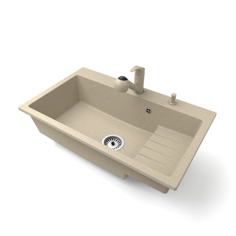 1 kép Nero Gránit mosogatótálca NERO Boss + kihúzható Shower csaptelep + adagoló (bézs)