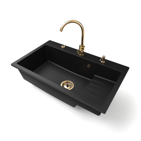 Nero Gránit mosogatótálca NERO Boss + magasított Gold csaptelep + adagoló + dugókiemelő (matt fekete) mosogatótálca termékleírás