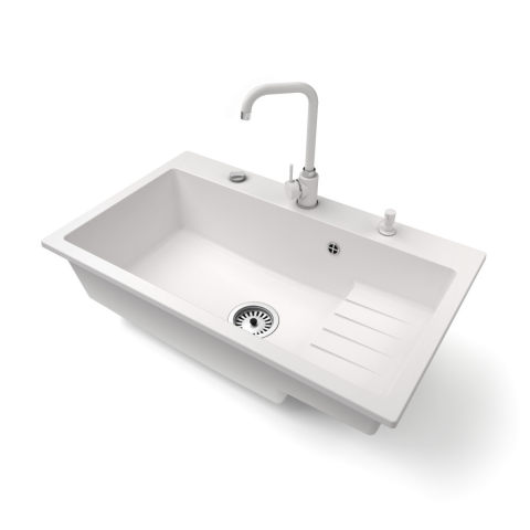 Nero Gránit mosogatótálca NERO Boss + Steel csaptelep + adagoló + dugókiemelő (fehér) mosogatótálca termékleírás