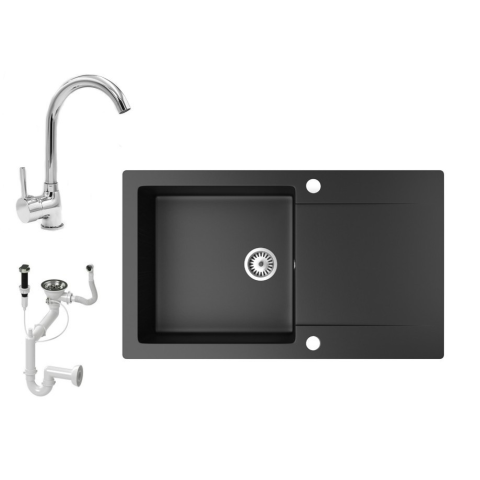 Nero Gránit mosogatótálca NERO Gold + magasított króm csaptelep + dugókiemelő (matt fekete) mosogatótálca termékleírás