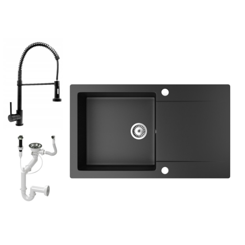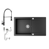 Nero Gránit mosogatótálca NERO Gold + zuhanyfejes Loop-Spiral csaptelep + dugókiemelő (matt fekete)