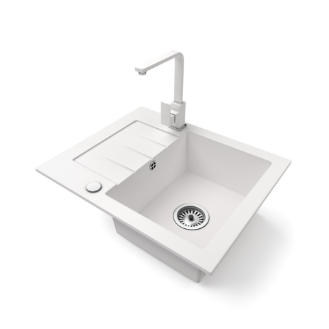 1 kép Nero Gránit mosogatótálca NERO Monza + Design csaptelep + dugókiemelő (fehér)