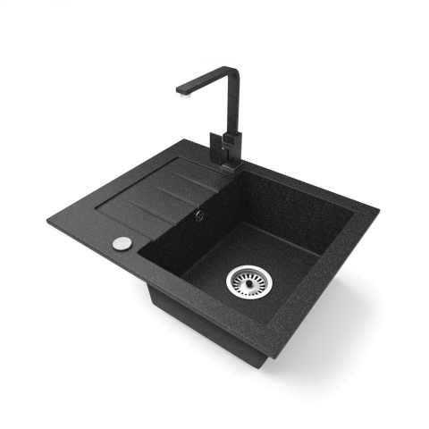 1 kép Nero Gránit mosogatótálca NERO Monza + Design csaptelep (fekete)