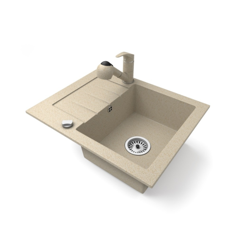 NERO Monza gránit mosogatótálca bézs színben. Kis méretének köszönhetően tökéletesen illik olyan kisebb méretű konyhákba ahol minden centiméter helyre szükség van. Mindössze 57 cm széles, amelyet mélységével kompenzál, így mind a medence, mind a csepegtet