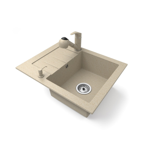 Nero Gránit mosogatótálca NERO Monza + kihúzható zuhanyfejes Shower csaptelep + dugókiemelő (bézs) mosogatótálca termékleírás