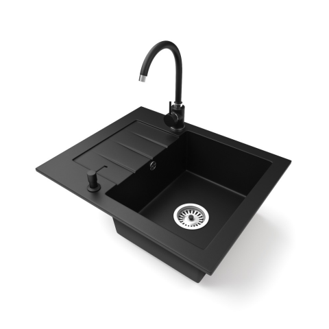 Nero Gránit mosogatótálca NERO Monza + magasított csaptelep + adagoló (matt fekete) mosogatótálca 1 kép