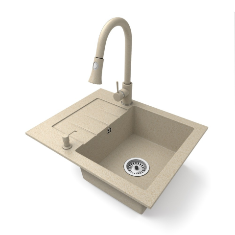 Nero Gránit mosogatótálca NERO Monza + Snake csaptelep + adagoló (bézs) mosogatótálca termékleírás