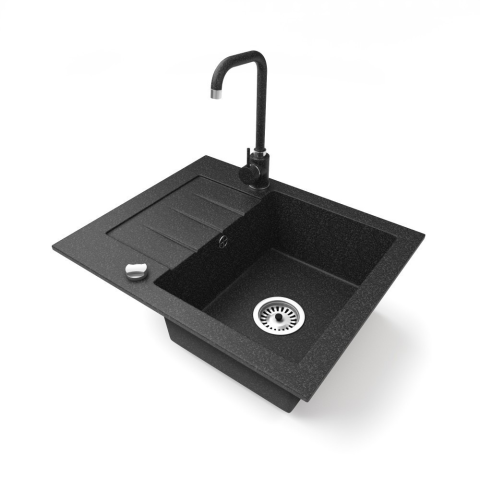 1 kép Nero Gránit mosogatótálca NERO Monza + Steel csaptelep + dugókiemelő (fekete)