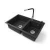 1 kép Nero Gránit mosogatótálca NERO Palazzo + kihúzható Linea csaptelep + adagoló (fekete)