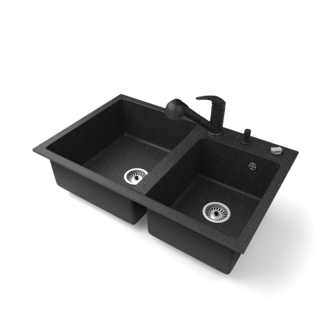 Nero Gránit mosogatótálca NERO Palazzo + kihúzható zuhanyfejes Shower csaptelep + adagoló + dugókiemelő (fekete) mosogatótálca termékleírás