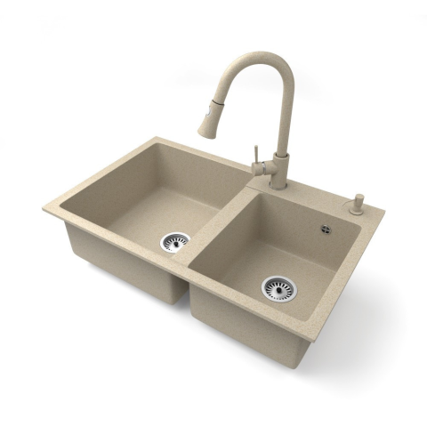 1 kép Nero Gránit mosogatótálca NERO Palazzo + kihúzható zuhanyfejes Snake csaptelep + adagoló (bézs)