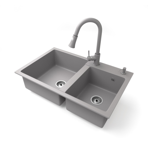Nero Gránit mosogatótálca NERO Palazzo + kihúzható zuhanyfejes Snake csaptelep + adagoló (szürke) mosogatótálca termékleírás