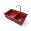1 kép Nero Gránit mosogatótálca NERO Palazzo + magasított króm csaptelep + adagoló + dugókiemelő (piros)