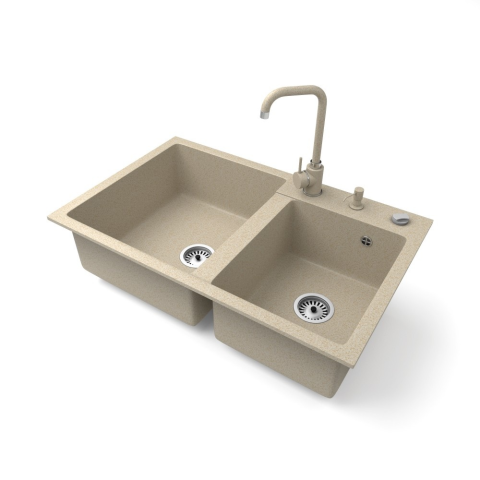 Nero Gránit mosogatótálca NERO Palazzo + Steel csaptelep + adagoló + dugókiemelő (bézs)