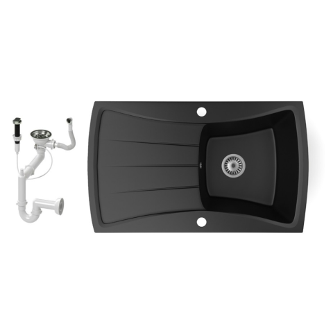 Teljes Nero Gránit mosogatótálca NERO Venezia + dugókiemelő (matt fekete) termékleírás